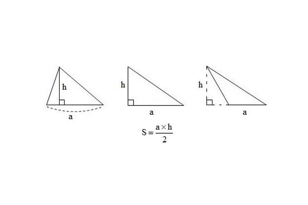 Diện tích hình tam giác = 1/2 (chiều dài x chiều cao)